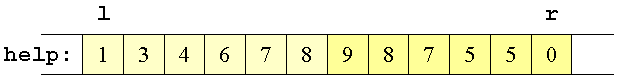 | Sidste gang vælger vi en vilkårlig af help[l] og help[r], da de har samme værdi. | |||||||||