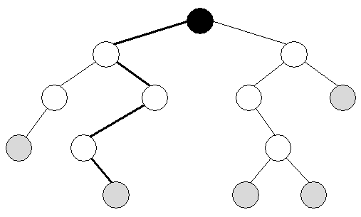 Er der netop ét undertræ, er situationen en anelse mere kompliceret. Lad os se et eksempel med instanser af Node-klassen: Fjerne knude, der kun har et venstre undertræ