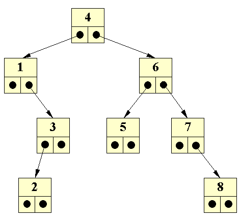 Det betyder, at et træ i virkeligheden er en rekursiv struktur: Et træ består af træer! Man kan derfor definere et træ rekursivt: