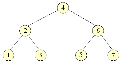 Et preorder gennemløb vil for hver knude der besøges, først se på knuden selv, og dernæst dens to børn (venstre først). Rækkefølgen vil derfor bliver: 4, 2, 1, 3, 6, 5, 7. Man kan generelt implementere et preorder gennemløb med følgende: Generel preorder implemen-