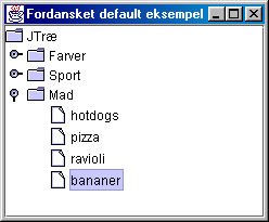 | Hvis vi f.eks. ønskede at vores danske udgave af default eksemplet skulle åbnes ind til bananer, kunne det gøres med følgende ændring af slutningen på VorJTree's konstruktor: | |||||||||