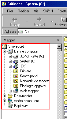 | Umiddelbart kan det være vanskeligt at gætte hvad træstrukturer er, når vi taler grafiske brugergrænseflader, med mindre man lige ved det. Et velkendt eksempel finder man i Windows Explorer (kaldet "Stifinder" på dansk) — ikke Internet Explorer, men den der bruges til at arbejde med directories og filer: | |||||||||