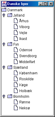 1 I denne opgave skal vi lave en træstruktur, der indeholder en række danske byer, katagoriseret efter i hvilken landsdel de ligger. Det skal resultere i følgende frame: Figur 1: